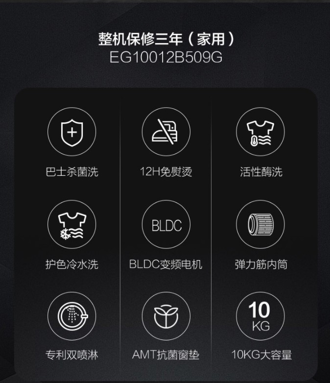 商品名称:海尔(Haier)滚筒洗衣机全自动 食品级巴氏除菌洗 10KG大容量 变频电机 EG10012B509G