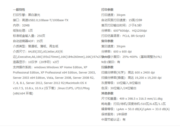 商品名称:兄弟(brother)DCP-7180DN 黑白激光多功能一体机(打印、复印、扫描、自动双面打印、有线网络)
