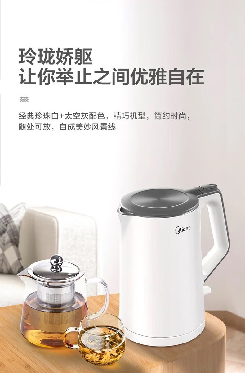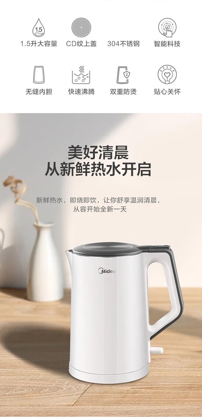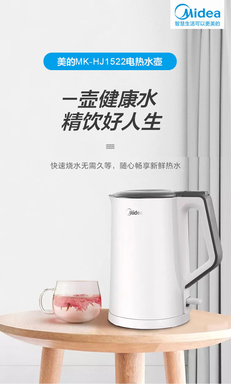 商品名称:美的/Midea 电热水壶 MK-HJ1522 食品接触用304不锈钢 1.5L(单位:台)