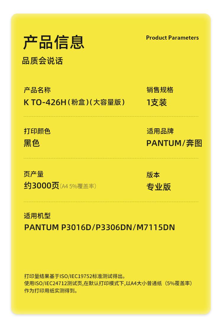 商品名称:科思特(KST)K TO-426H粉盒黑色(适用奔图 P3016D/P3306DN/M7115DN)打印页数:3000页(单位:支)