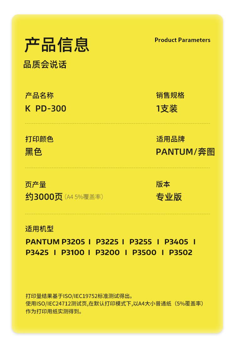 商品名称:科思特(KST)K PD-300硒鼓(鼓粉一体)黑色(适用PANTUM P3205/P3225/P3255/P3405/P3425/P3100/P3200/P3500/P3502)打印页数:3000页(单位:支)