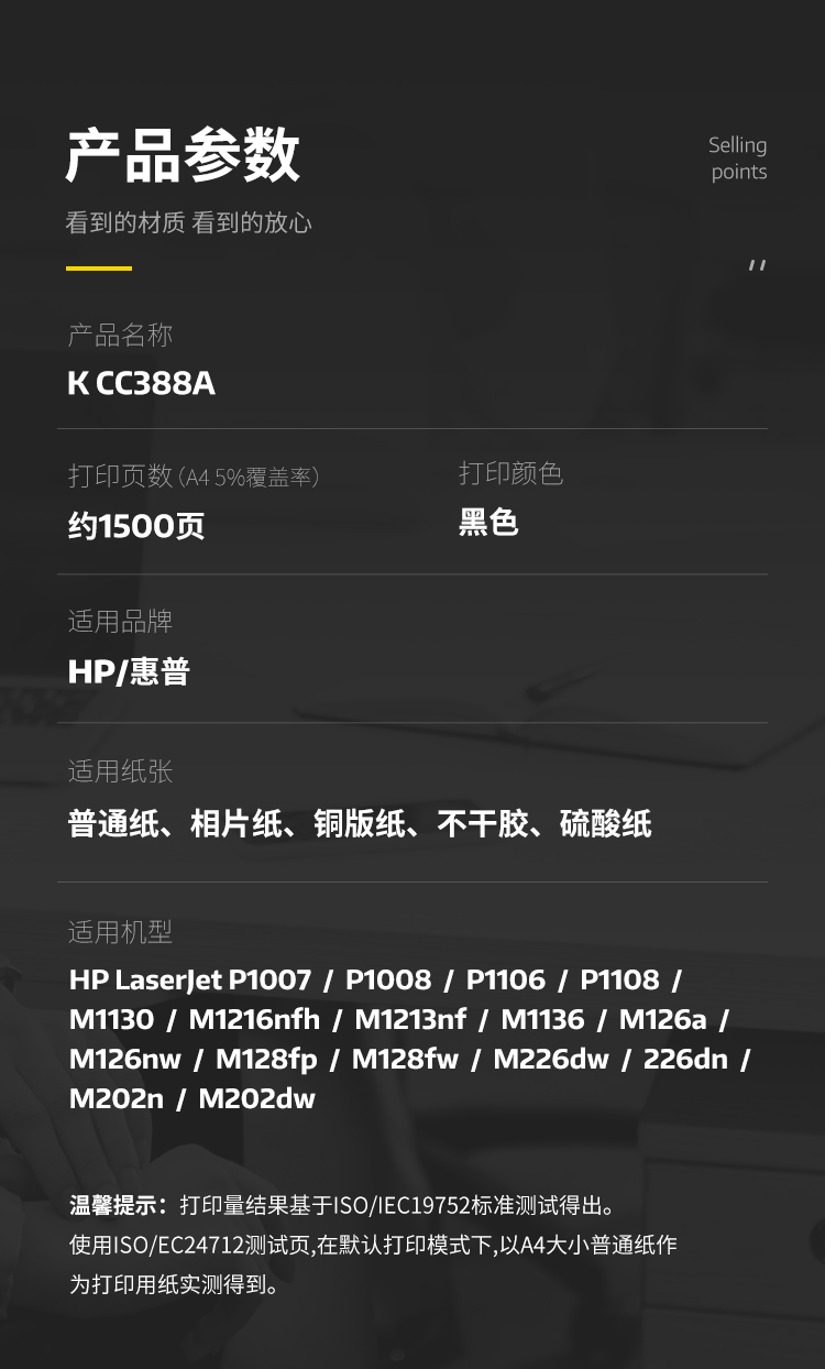 商品名称:科思特 K CC388A 易加粉硒鼓 黑色(适用HP LaserJet P1007/1008/1136/1130/M1216nfh/M1213)1500页 专业版(单位:个)